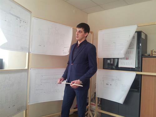 Юрий Алексеевич рассказал про технологический процесс предприятия, проводимую и планируемую модернизацию электрооборудования, отметил особенности электроснабжения пажароопасных помещений и т.п.