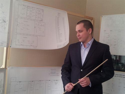 Защита дипломных проектов студентов группы ЗЭХП-1-09 проходила на предприятии ООО «Хольц-Дизайн». Перед началом защит главный инженер предприятия Варутин Юрий Алексеевич провел для выпускников и членов ГЭК экскурсию по предприятию.
