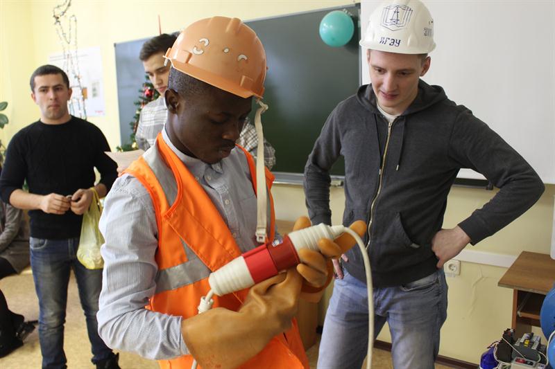 Новичкам предлагалось перевоплотиться в действующих энергетиков и произвести подключение электродвигателя, пройдя через созданные старшекурсниками препятствия. Первокурсников в темном коридоре сначала тестировали на знание основных понятий электротехники, затем облачали в защитный жилет электрика, каску, диэлектрические рукавицы и галоши. Далее их раскручивали и отправляли в аудиторию, где пройдя через рукав из полиэтилена, необходимо было произвести подключение и пуск трехфазного двигателя.