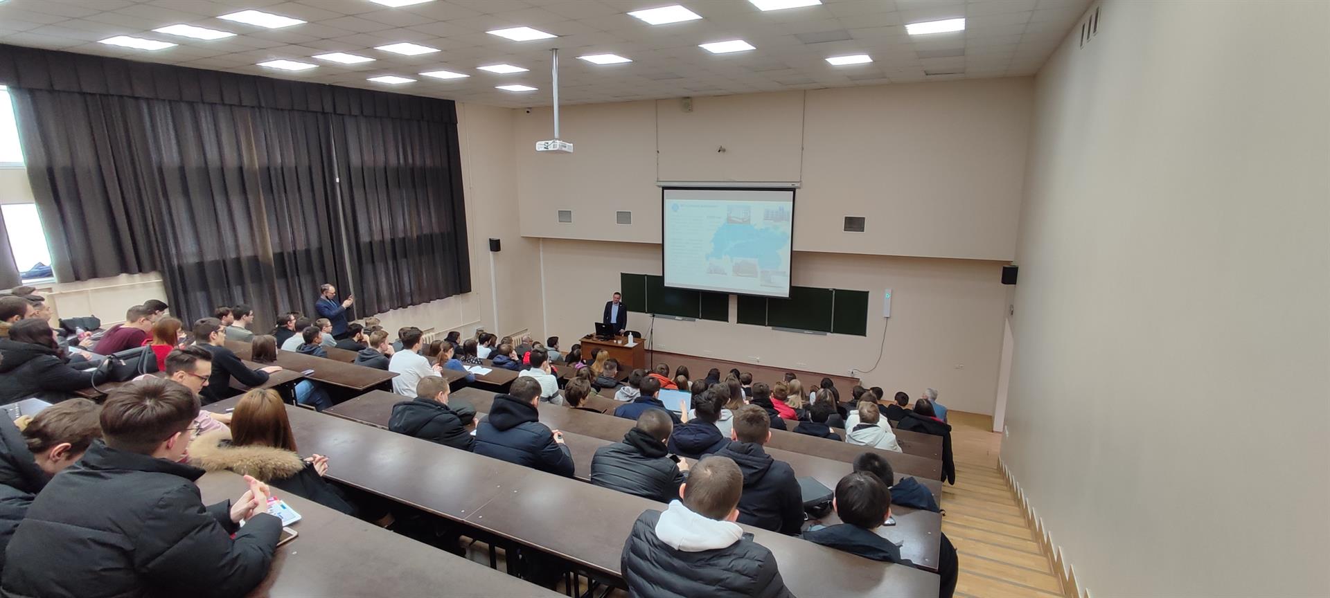 Встречу с бакалаврами провел начальник Управления по работе с персоналом АО «Сетевая компания» Семенюк Всеволод Владимирович. Всеволод Владимирович перечислил многочисленные перспективы, которые получат студенты при сотрудничестве с предприятием. Многих студентов заинтересовало обучение в рамках целевого договора с АО «Сетевая компания», данным договором предусматривается прохождение практик студентами на предприятии, обеспечение студентов стипендиями от предприятия, а также гарантия трудоустройства молодого специалиста после окончания ВУЗа.