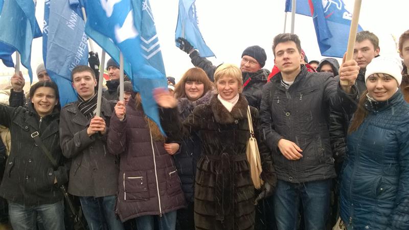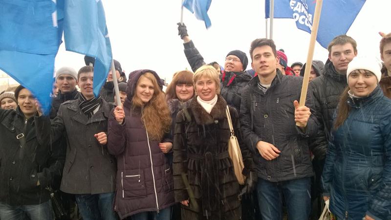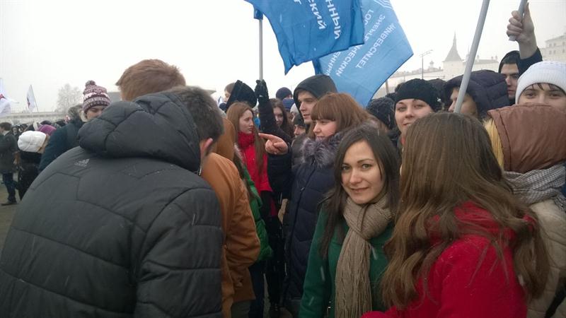 Студенты многих казанских вузов, стоявшие группами под развевающимися по ветру флагами своих учебных заведений,поддерживали высоких гостей выступающих с трибун. Студенты нашего института с огромным энтузиазмом приняли участие в митинге и поддерживали воссоединения Крыма с Россией.