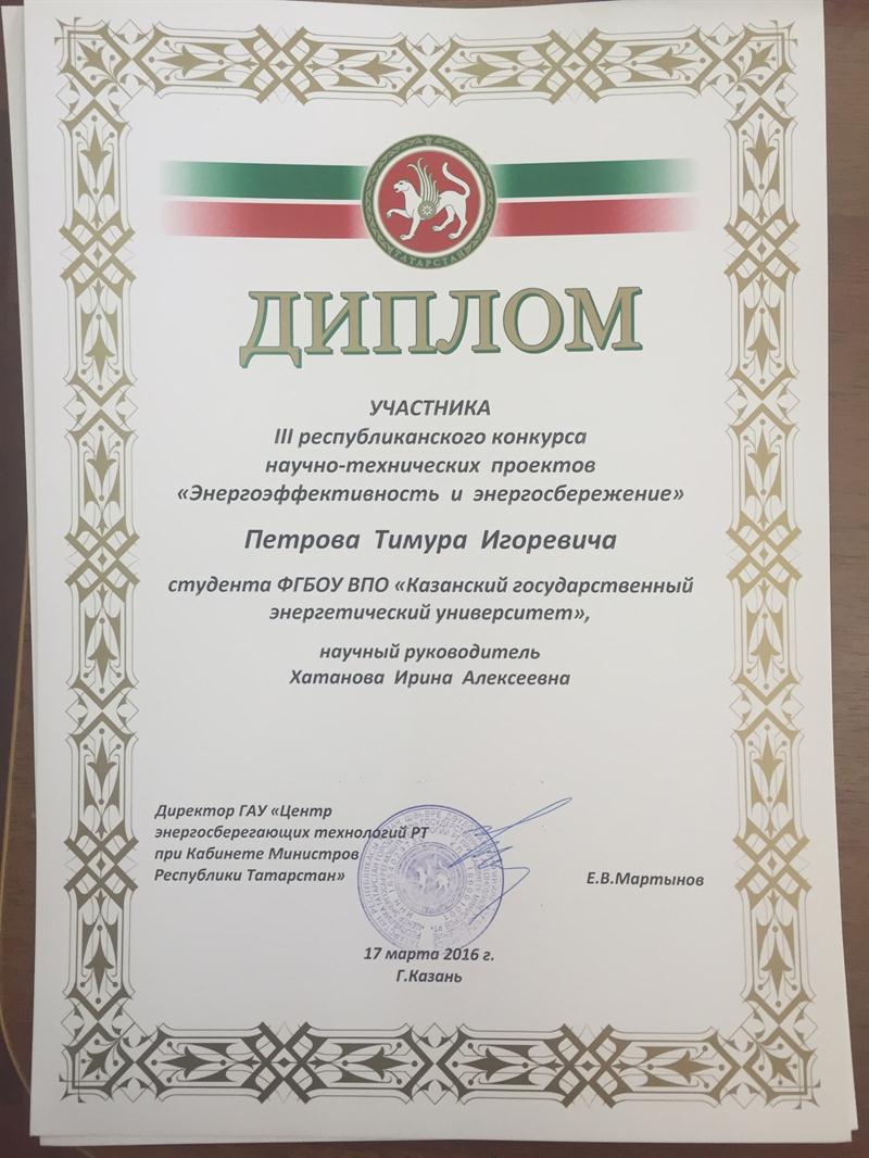 Дирекция ИЭЭ выражает благодарность студентам , которые приняли участие в научно-техническом проекте "Энергоэффективность и энергоснабжение".