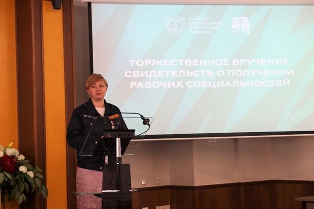 2 июня состоялось торжественное вручение свидетельств о профессии рабочего, должности служащего студентам 1 и 2 курса КГЭУ, прошедшим обучение по профессиям «Электромонтер по ремонту и обслуживанию электрооборудования 3-го разряда» и «Электромонтажник по освещению и осветительным сетям 3-го разряда». С успешным завершение обучения студентов поздравили зам. директора института дополнительного профессионального образования Энже Давлетшина, начальник Управления по воспитательной и социальной работе Гульнара Ляукина и руководители программ Шамиль Хасанов и Денис Рыжков.