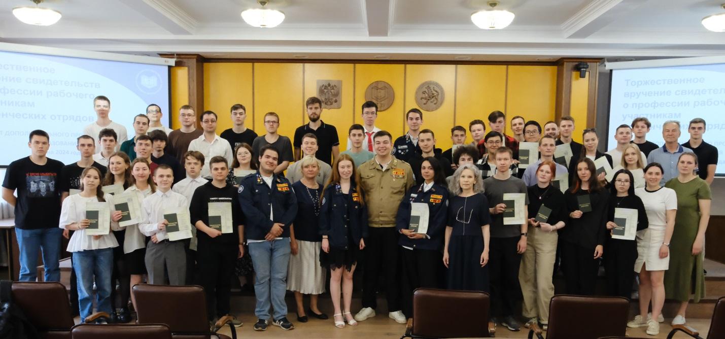 4 июня 2024 года состоялось торжественное вручение свидетельств о профессии рабочего, должности служащего участникам студенческих отрядов КГЭУ, КНИТУ-КАИ и КНИТУ (КХТИ), прошедшим обучение по профессиям «Электромонтер по ремонту и обслуживанию электрооборудования 3-го разряда» и «Электромонтажник по освещению и осветительным сетям 3-го разряда». С успешным завершением обучения студентов поздравил директор ИДПО Владимир Ильин.
