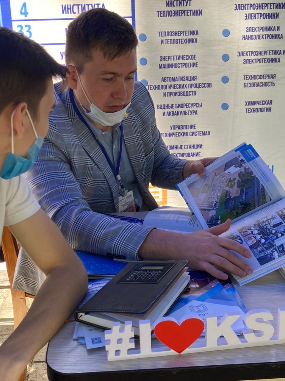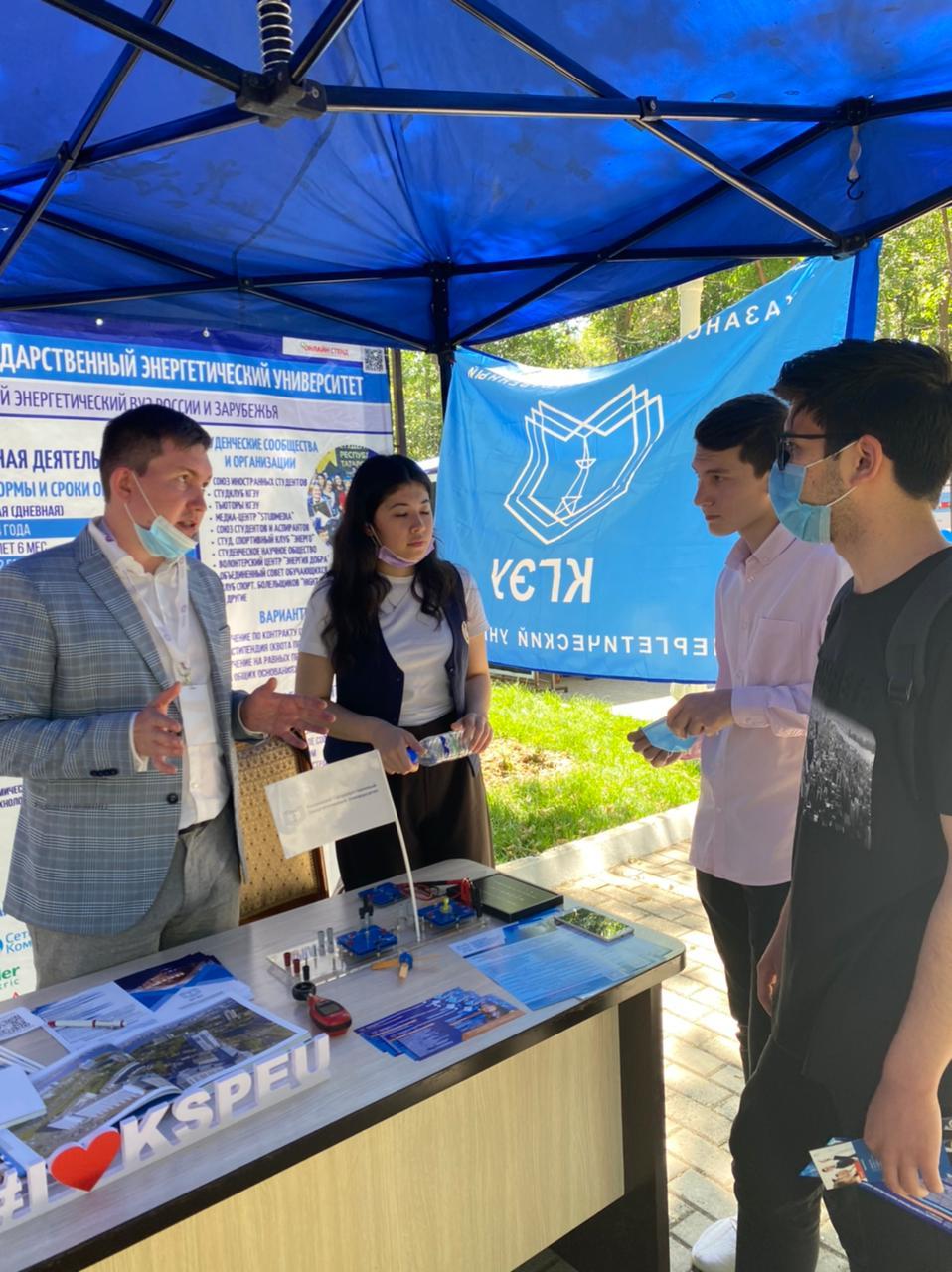 На стенде энергетического университета была организована презентация вуза по всем направления бакалавриата, магистратуры и аспирантуры. Презентовали вуз: директор ЦДО Зайнуллин Радик Рустэмович, студент гр. ТРП-1-20 Нарбаев Аллаберди Руслан угли. Абитуриентам и их родителям рассказали условия поступления, формы и виды обучения, общежития и передавались буклеты о вузе.