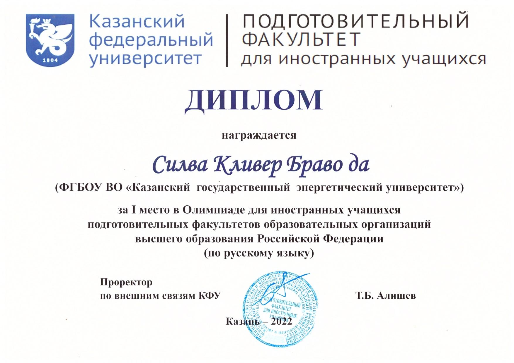 21 мая в Казанском федеральном университете (КФУ) прошло торжественное закрытие Всероссийской олимпиады по русскому языку для иностранных учащихся подготовительных факультетов/отделений образовательных организаций высшего образования, в котором приняла участие команда из Энергетического университета (отделение предвузовской подготовки иностранных граждан).