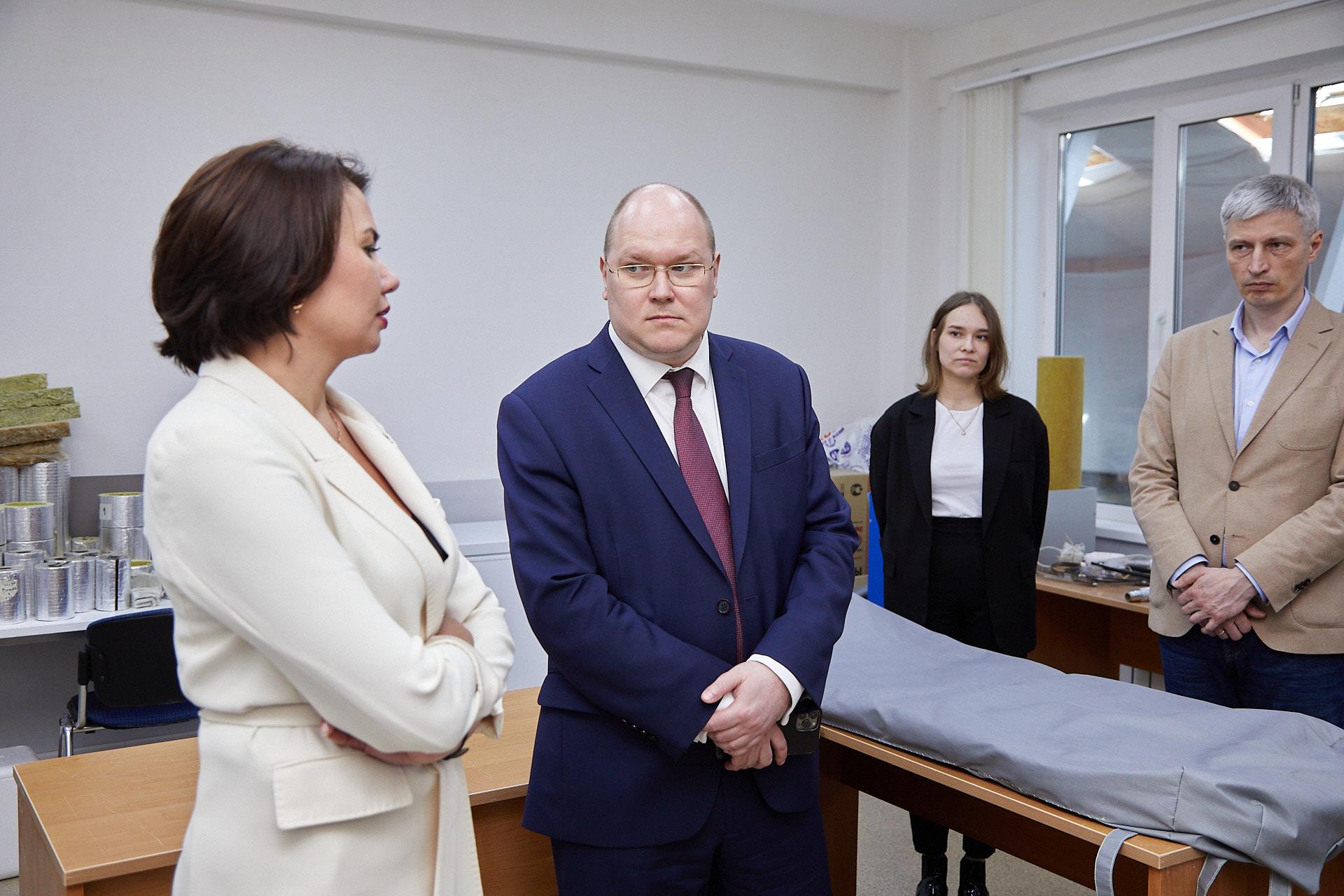 24 апреля прошел первый день проектно-аналитической сессии, в которой приняли участие эксперты ФГАНУ "Социоцентр", представители министерств и индустриальных партнеров, а также члены ректората и проектного офиса КГЭУ. Для экспертов была проведена экскурсия по лабораториями Университета, в рамках которой они посетили МНИЛ "Умные наноматериалы для повышения энергоэффективности". Аспирант и инженер Пономарев Роман и студентка 1 курса магистратуры и инженер кафедры ПТЭ Гафиатуллина Камиля рассказали про лабораторию и ее научную деятельность. Инженеры продемонстрировали лабораторные стенды для изучения свойств теплоизоляционных материалов, установку для определения коэффициента теплопроводности теплоизоляции разной влажности при отрицательных температурах и термочехлы на основе композитов из аэрогеля. Сотрудники лаборатории рассказали о свойствах наноматериалов и новых видах теплоизоляции и продемонстрировали образцы аэрогелевых композитов.