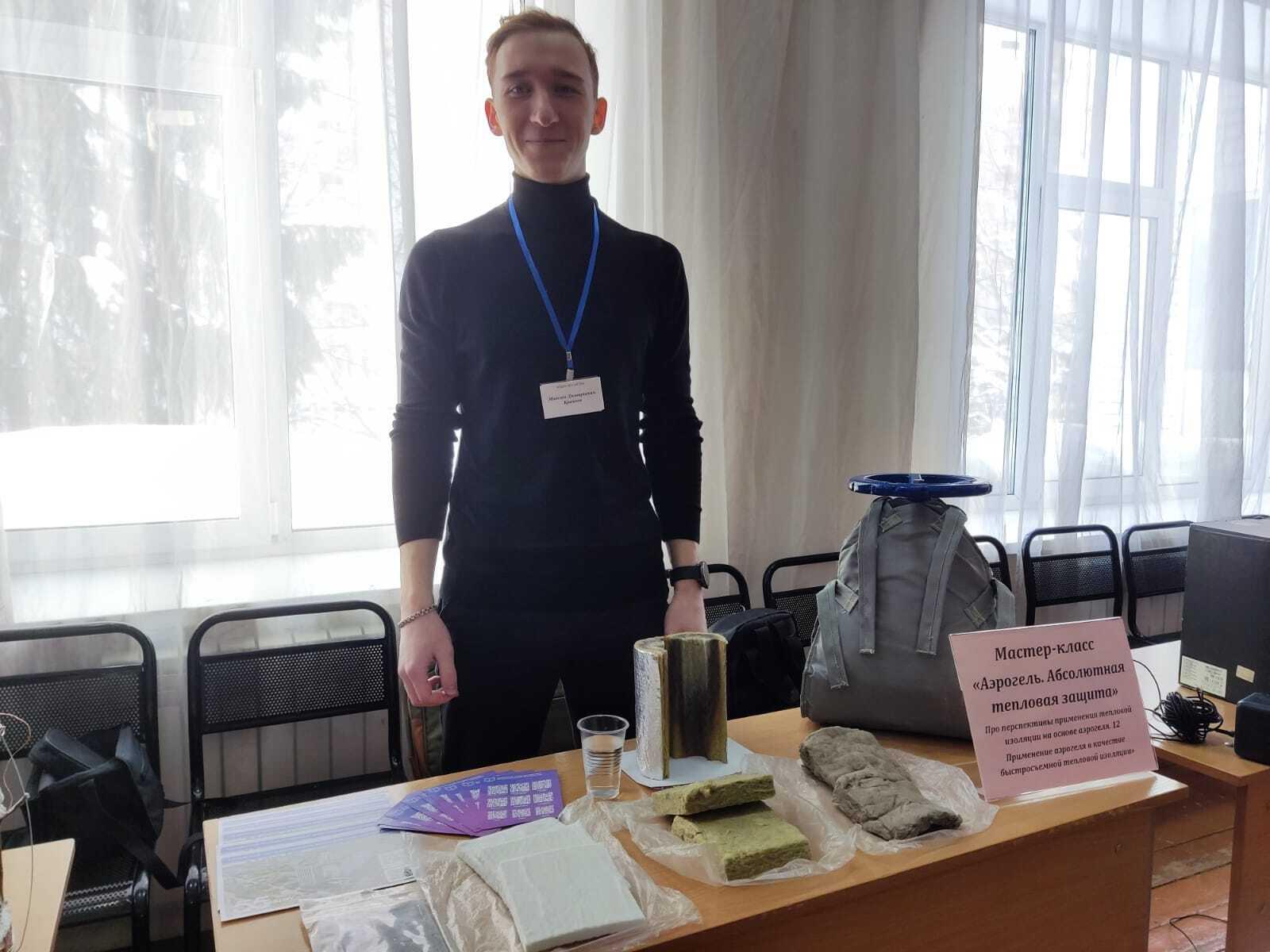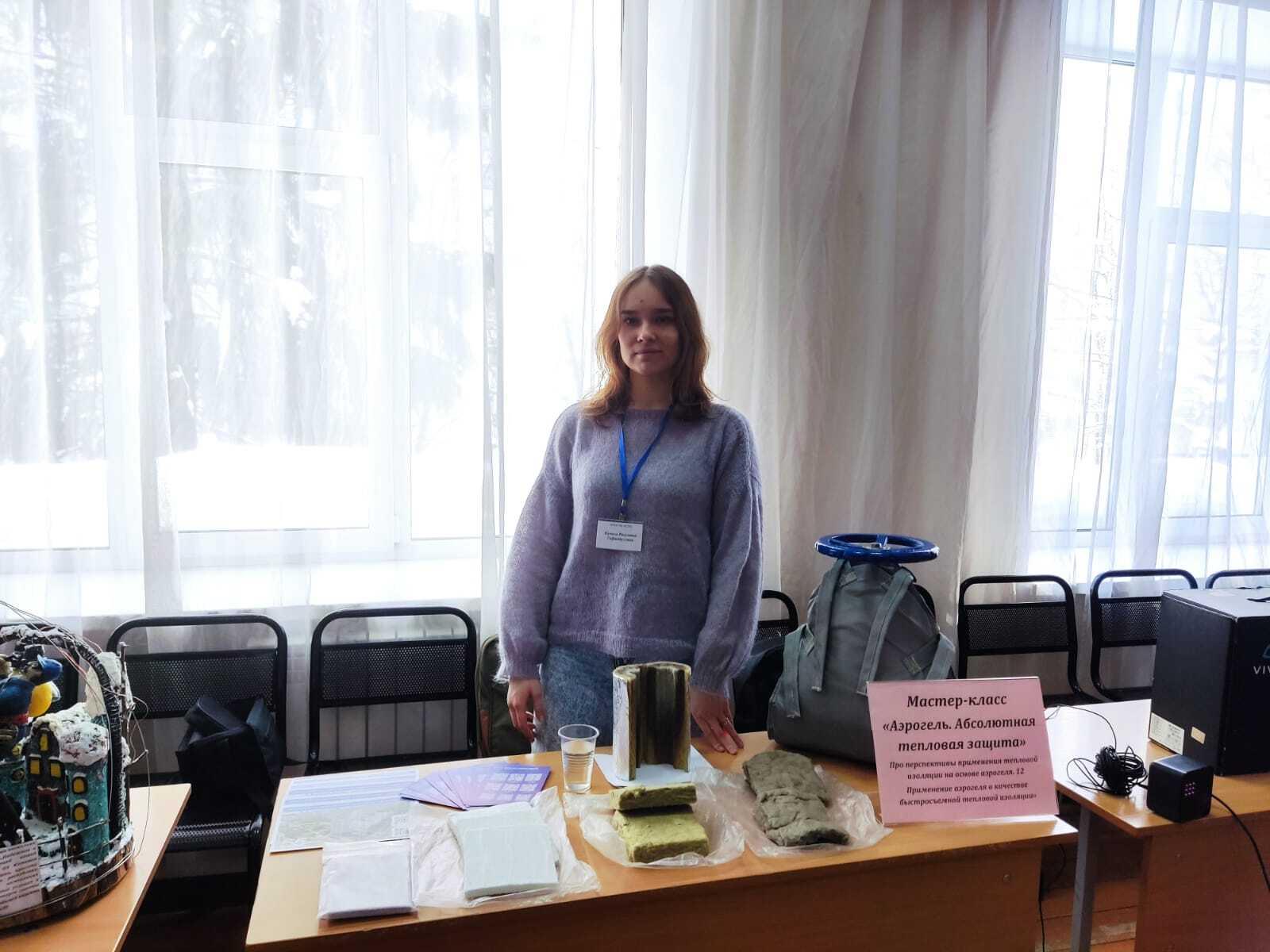 Инженеры кафедры «Промышленная теплоэнергетика и системы теплоснабжения» Гафиатуллина Камиля и Крайков Максим провели для школьников мастер-класс «Аэрогель. Абсолютная тепловая защита». Школьникам рассказали о перспективах применения тепловой изоляции на основе аэрогеля и быстросъемной тепловой защиты.