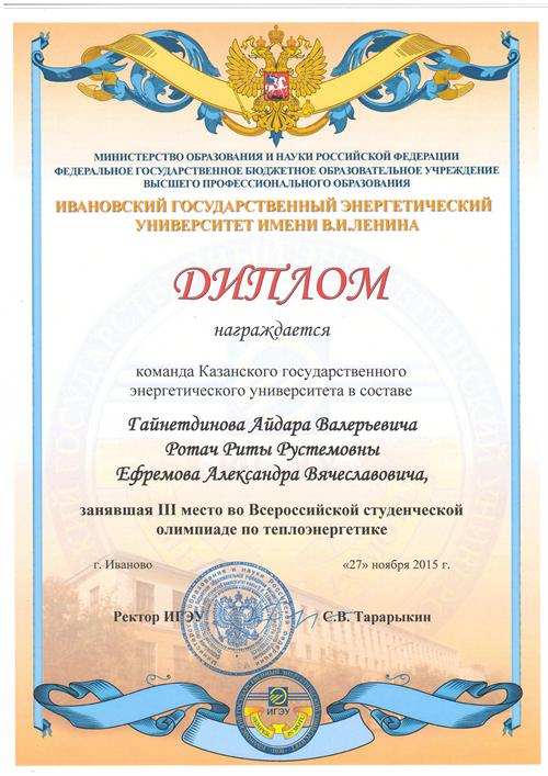 27 ноября 2015 г. прошла третья Всероссийская студенческая олимпиада по теплоэнергетике в Ивановском государственном энергетическом университете (ИГЭУ)