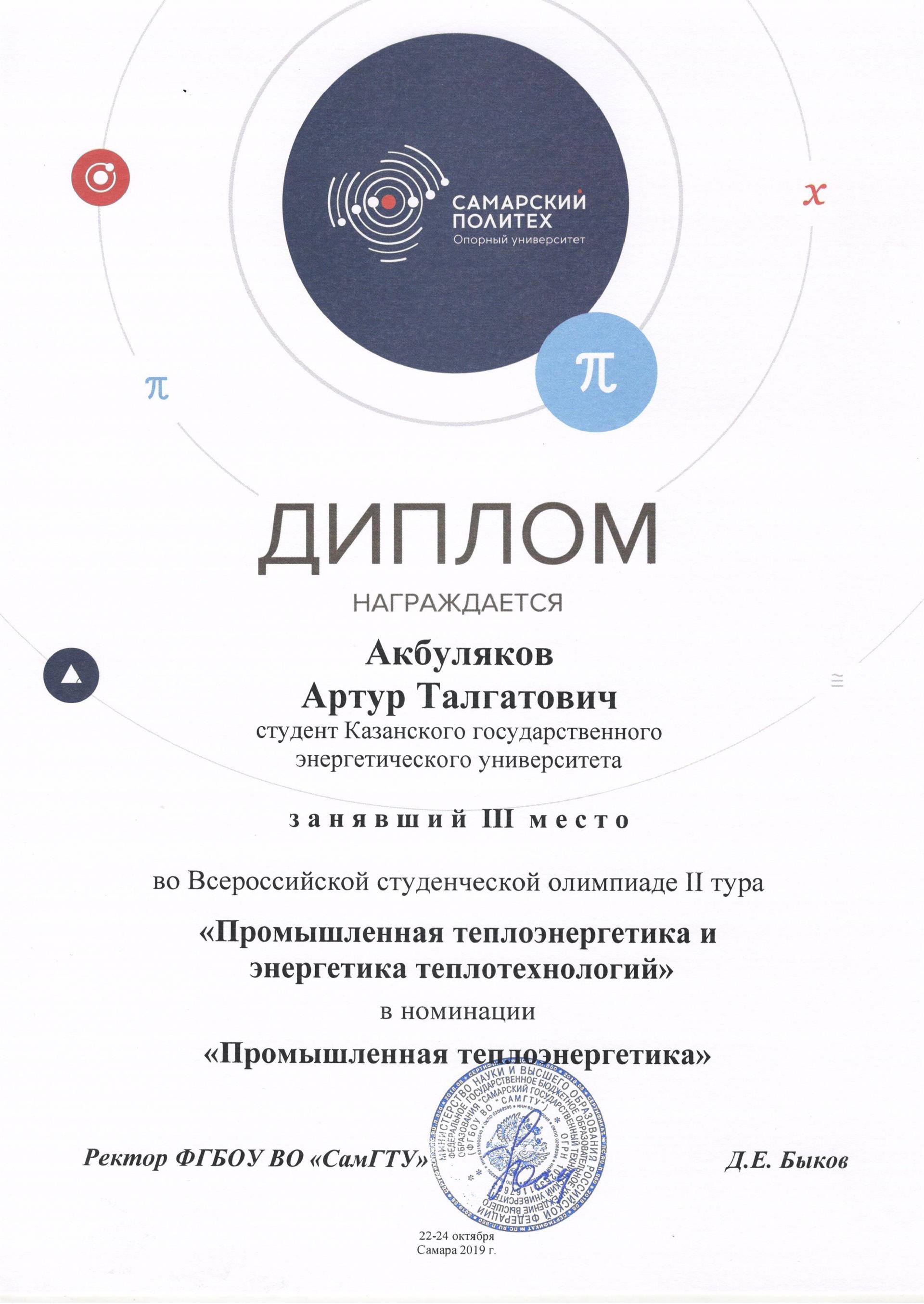 Второй тур Всероссийской студенческой олимпиады по специальности «Промышленная теплоэнергетика и энергетика теплотехнологий» прошел в опорном университете с 22 по 24 октября. Олимпиада проходила на базе кафедры «Промышленная теплоэнергетика» Самарского государственного технического университета (СамГТУ). В олимпиаде приняли участие команды из г. Самары (СамГТУ), г. Саратова (Саратовский государственный технический университет имени Ю.А. Гагарина), г. Казани (Казанский государственный энергетический университет) и г. Ульяновска (Ульяновский государственный технический университет).