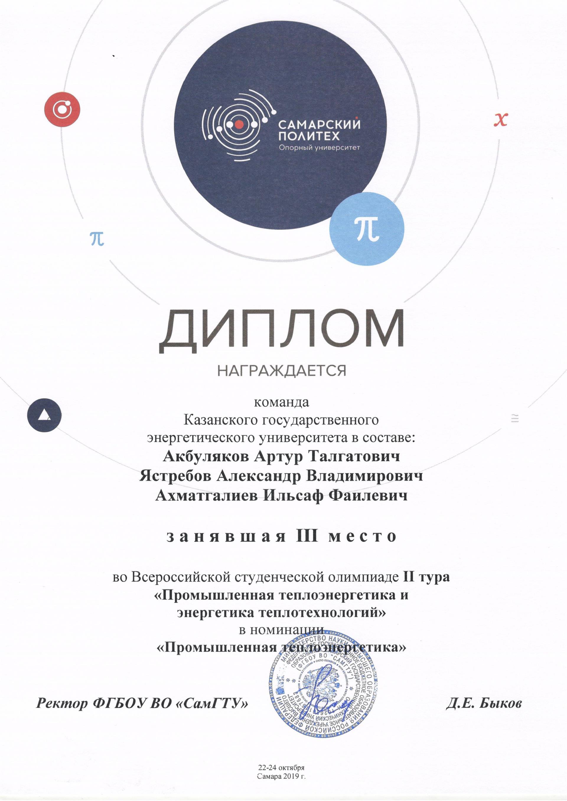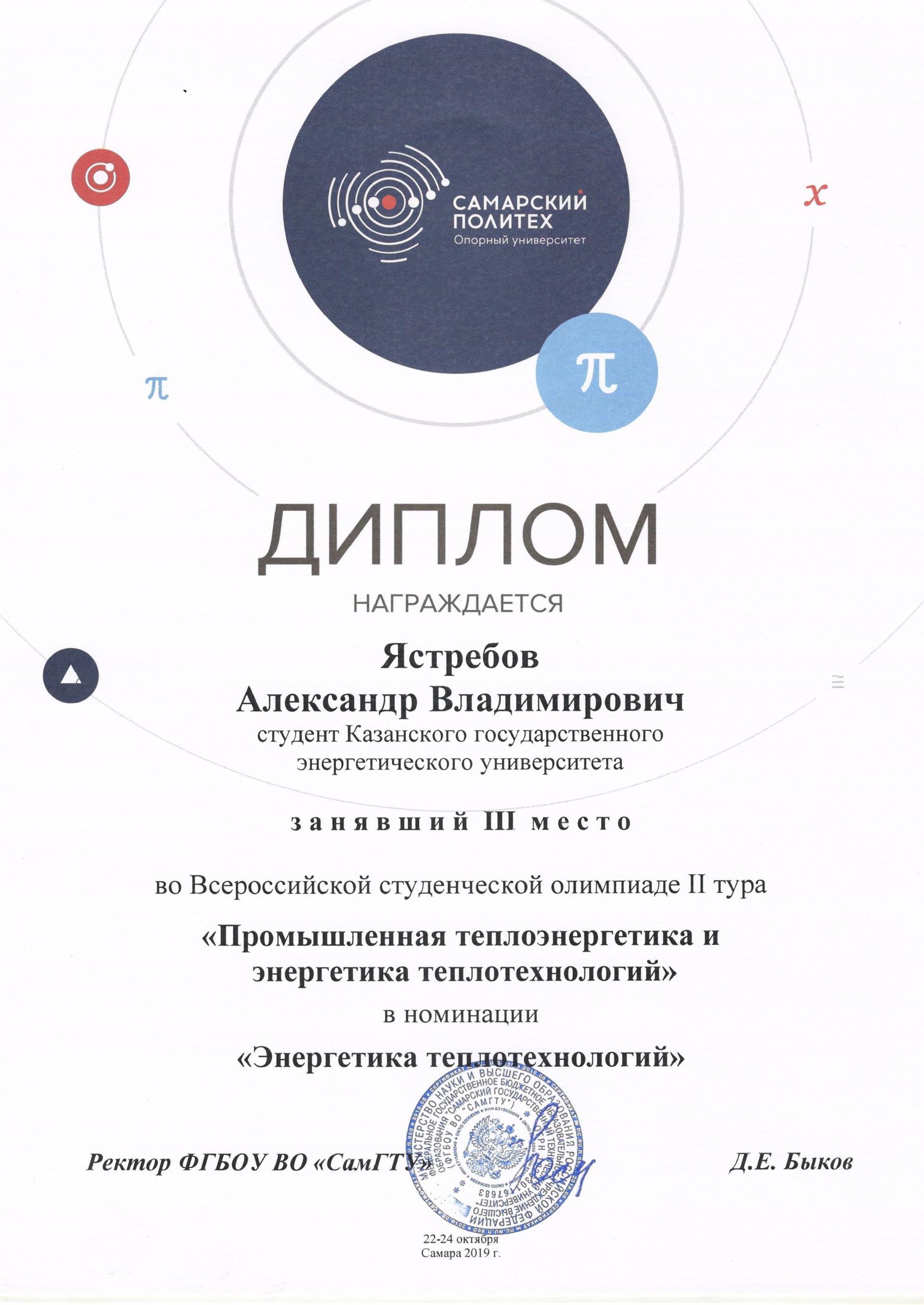 С 22 по 24 октября проходил II тур Всероссийской студенческой олимпиады «Промышленная теплоэнергетика и энергетика теплотехнологий» в Самарском государственном техническом университете. Студенты кафедры ПТЭ стали призерами данной олимпиады.