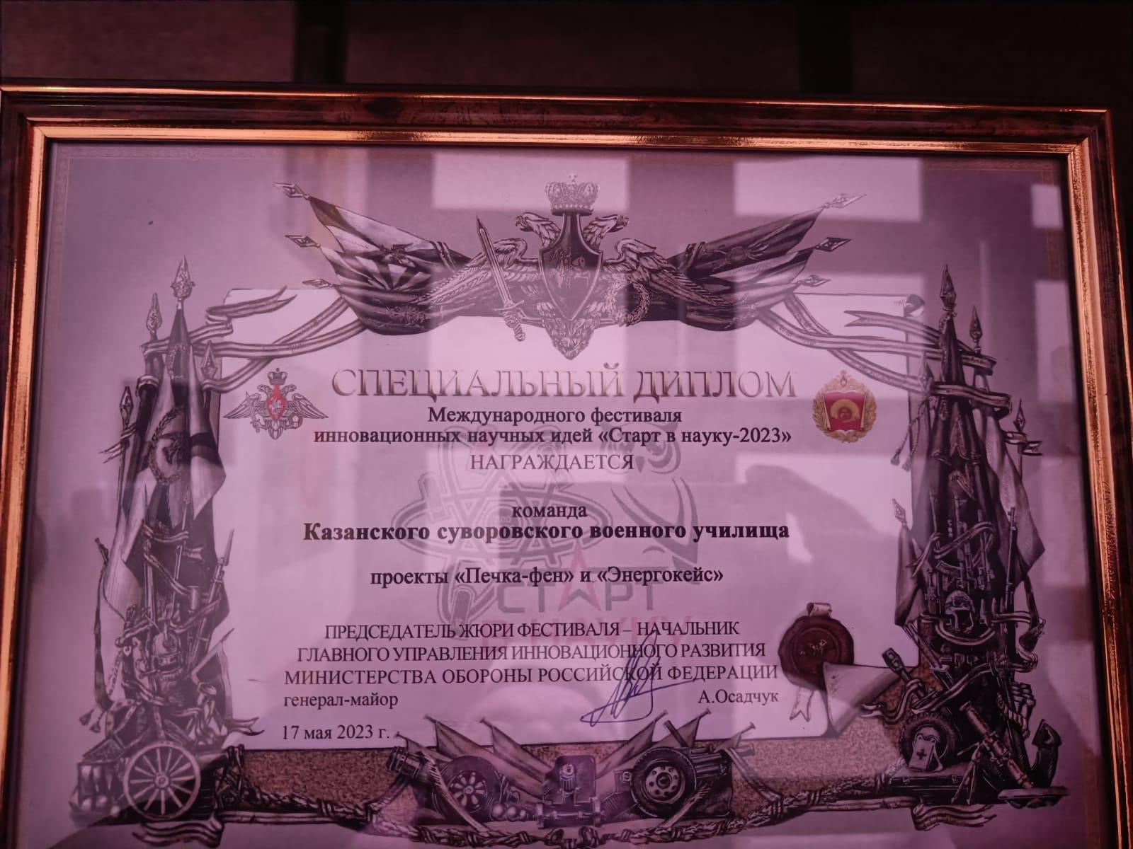 15-17 мая 2023 года курсанты Казанского суворовского военного училища представили данные проекты на VIII международном фестивале инновационных научных идей «Старт в науку» среди воспитанников училищ Министерств обороны России и стран СНГ. На закрытие фестиваля в Тверь приехали представители военно-дипломатического корпуса 43 дружественных нам государств.