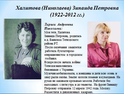 Связистка Халитова Зинаида, хрупкая девушка, под обстрелом и бомбежкой, искала прорыв на линии и восстанавливала связь с командованием части.