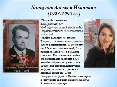 Снайпер Хлопунов Алексей уничтожил за время военной службы 93 немецких офицера.