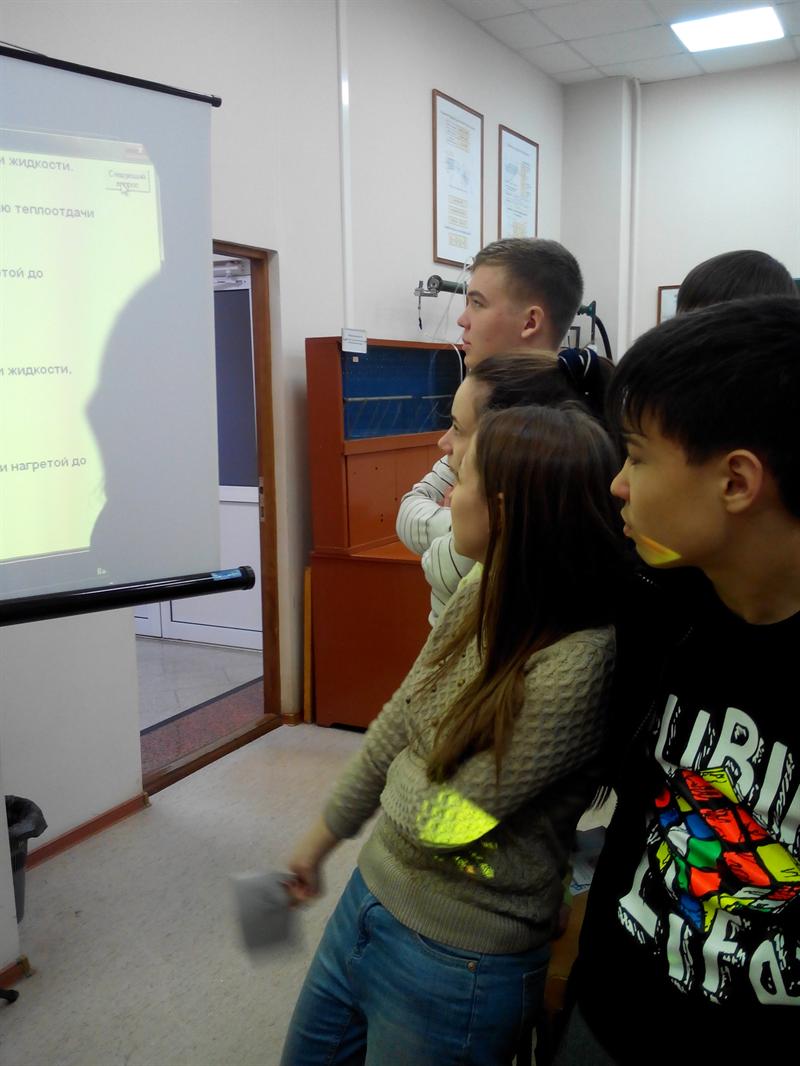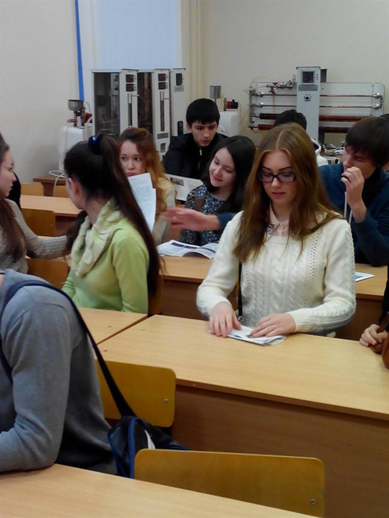 Все желающие задавали интересующие их вопросы, осмотрели помещения и познакомились с лабораторным оборудованием кафедры ТОТ и даже участвовали в теоретическом тесте и наблюдали физические явления в экспериментальных установках. Ребятам были розданы брошюры и рекламные материалы о кафедре ТОТ, о Институте теплоэнергетики, о подготовительных курсах и о КГЭУ в целом.