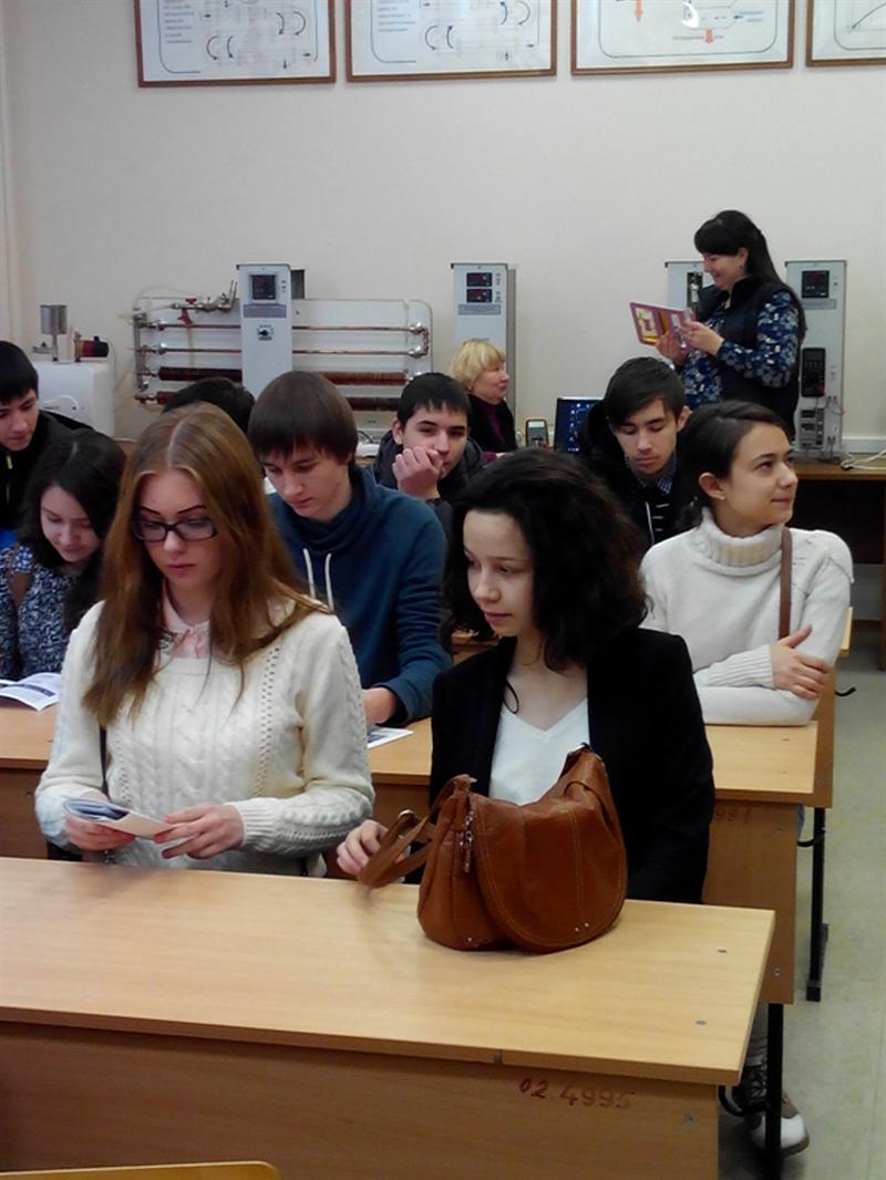 С ними была проведена беседа о Вузе, о правилах приема в Вузы, об особенностях поступления в КГЭУ в 2014 году. «Будущих студентов» ознакомили со структурой и составом кафедры «Теоретические основы теплотехники»  (ТОТ)  КГЭУ и ее историей. С радушием «гостей»-школьников встречали: заведующий кафедрой Харчук С.И., зам. зав. кафедрой по НР Попкова О.С., профессора Якимов Н.Д., Халитов Ф.Г., зав. лабораторией Григорьева Н.В., вед. программист Шаймухаметова А.Ш.