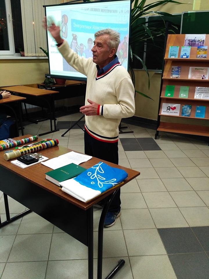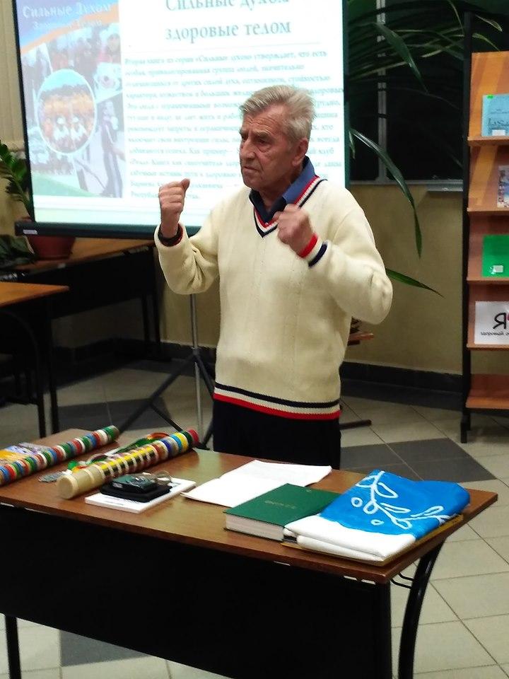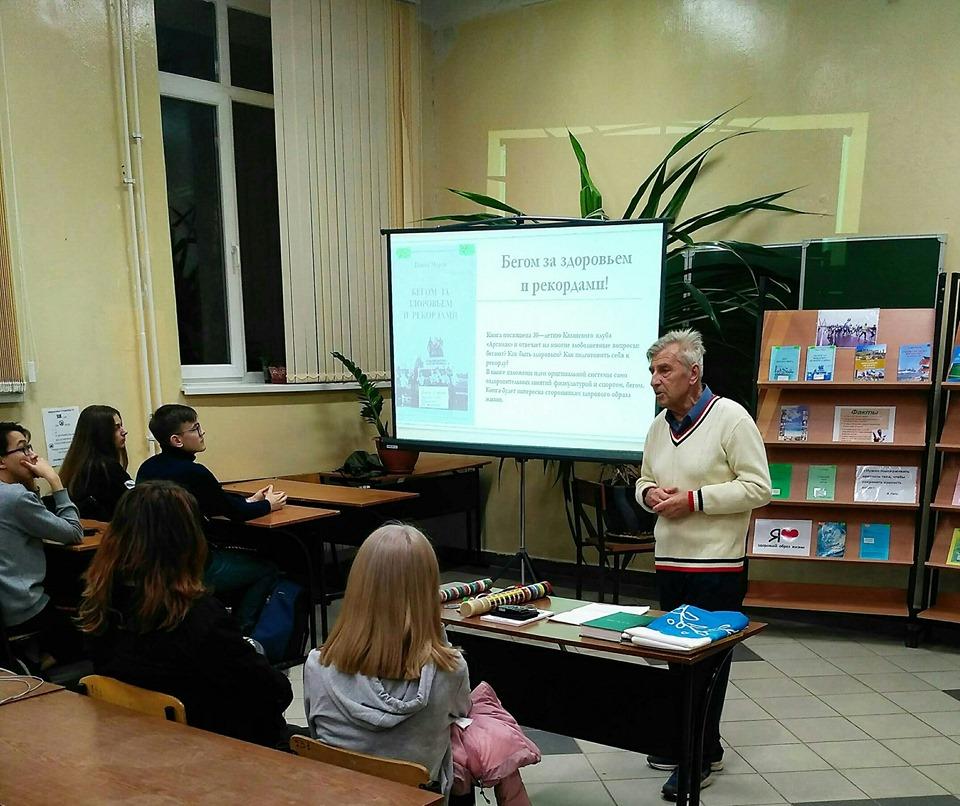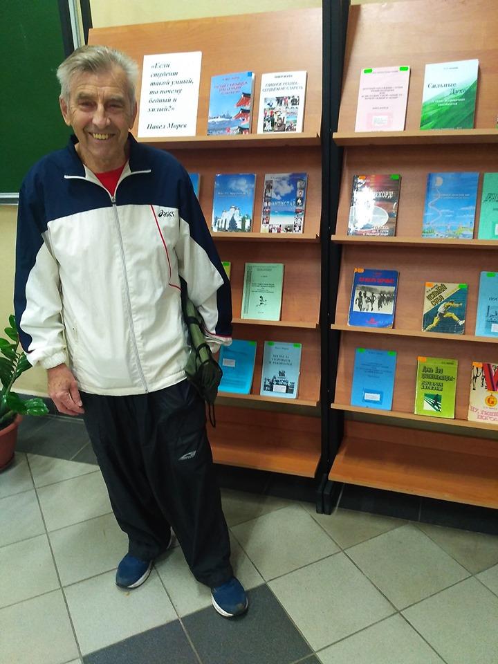 Встреча в читальном зале библиотеки со студентами КГЭУ студентам КГЭУ ветерана вуза – бывшего преподавателя физкультуры, известного свехмарафонца Павла Морева.