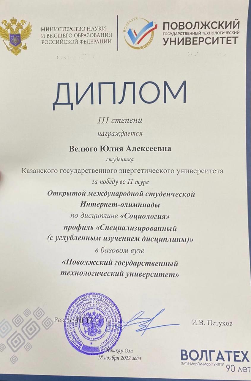 Поздравляем студентов нашей кафедры Димпломантов Второго тура Открытой Международной Олимпиады по Социологии и истории, прошедшей на базе Поволжского государственного технологического университета, г. Йошкар-Ола