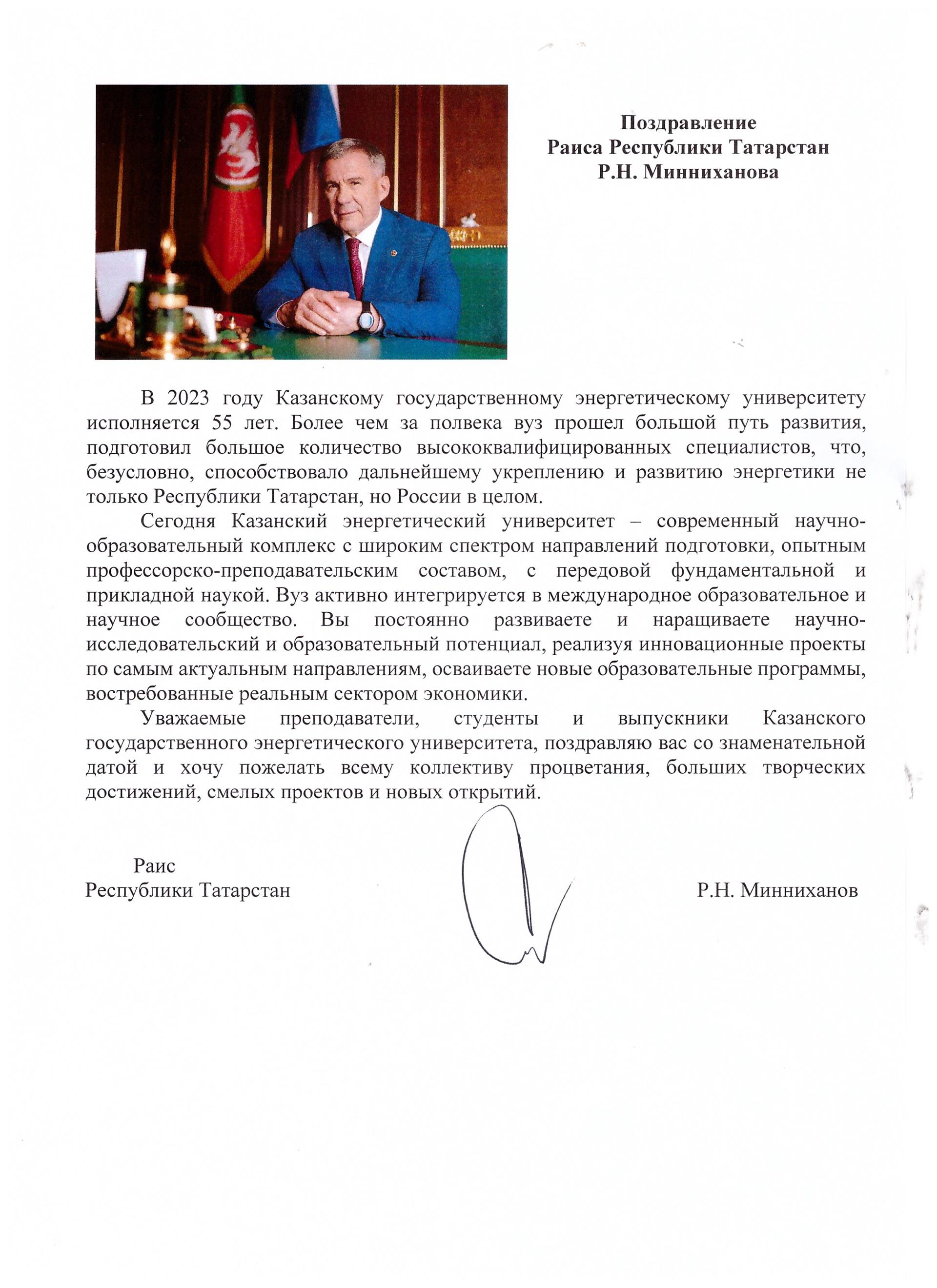 Поздравление Раиса Республики Татарстан
