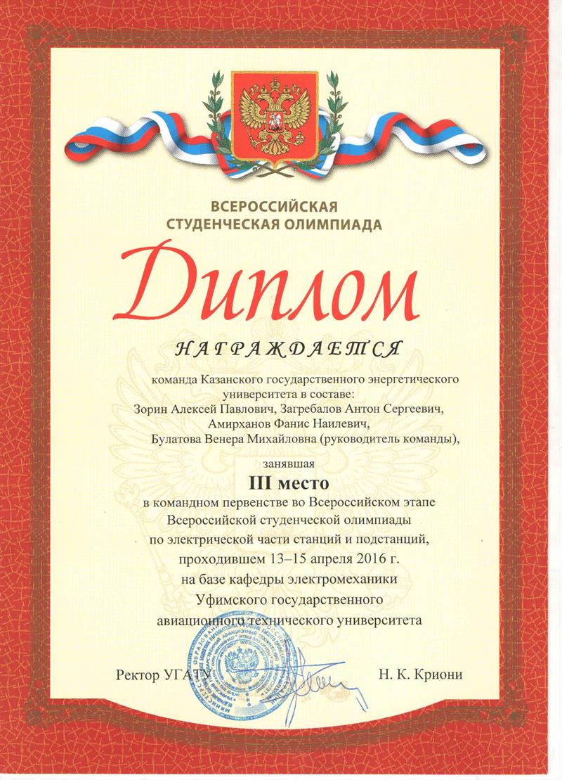 Всероссийская студенческая олимпиада по электрической части станций и подстанций 2016