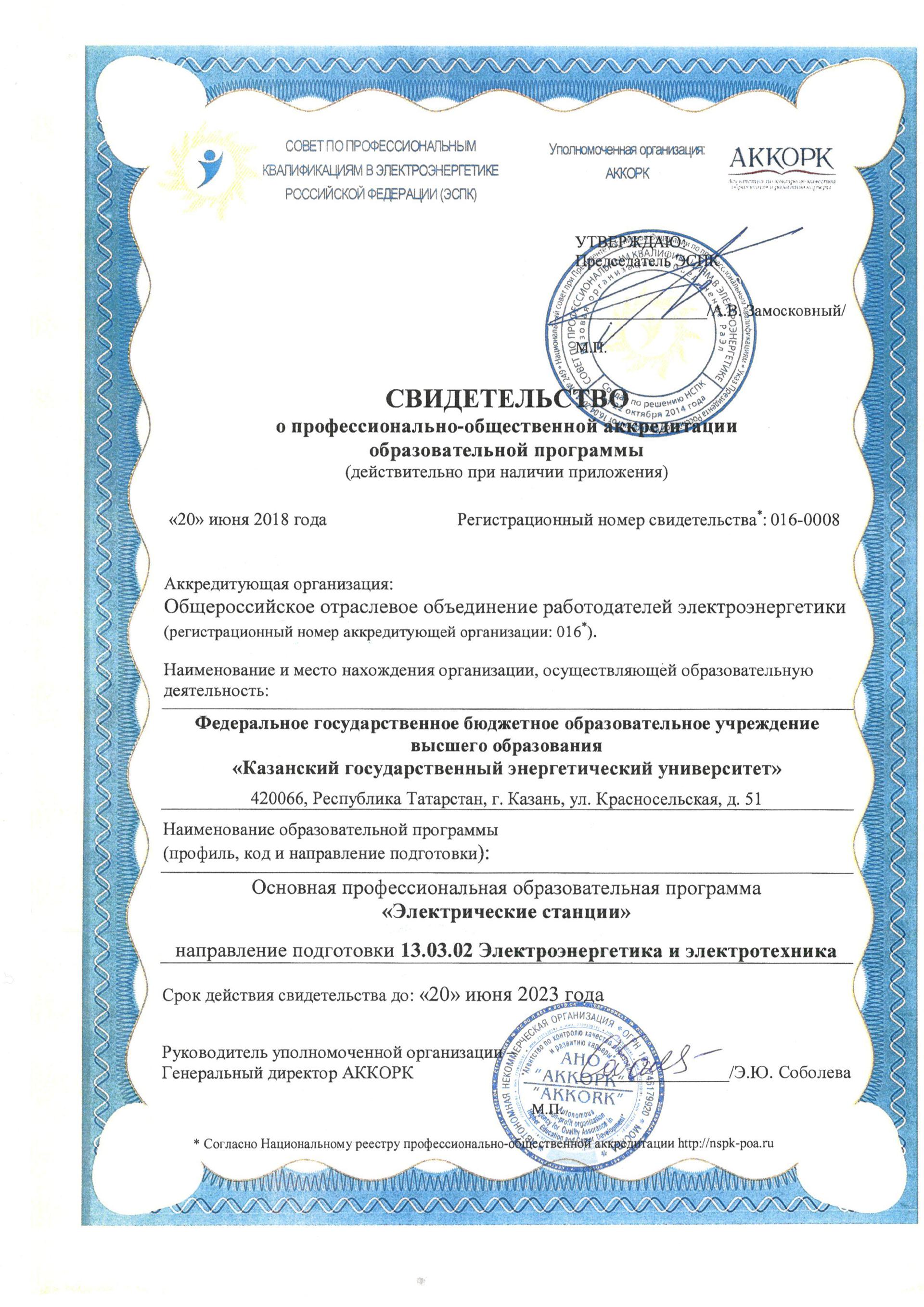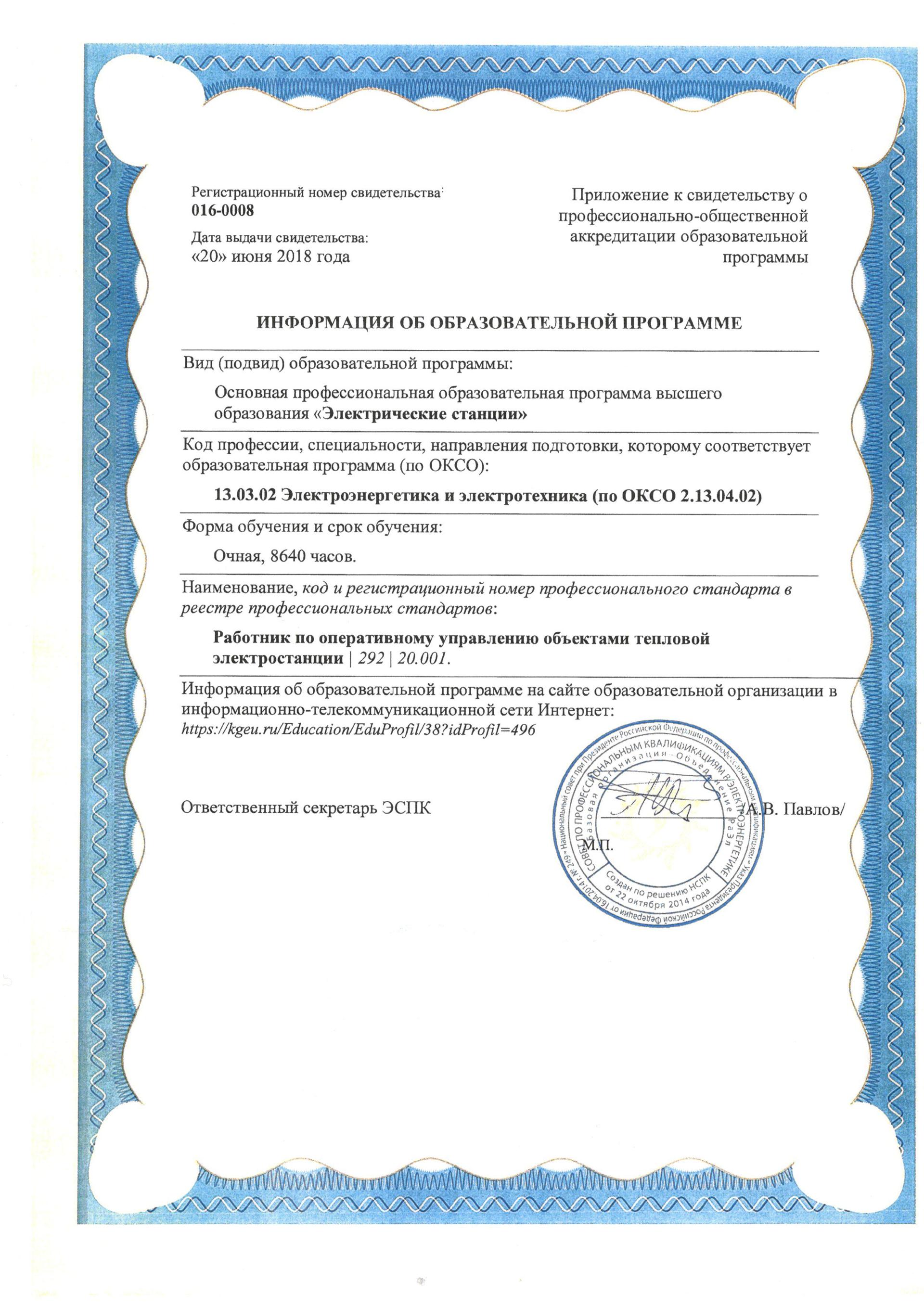 Профессионально-общественная аккредитация ОП "Электрические станции"
